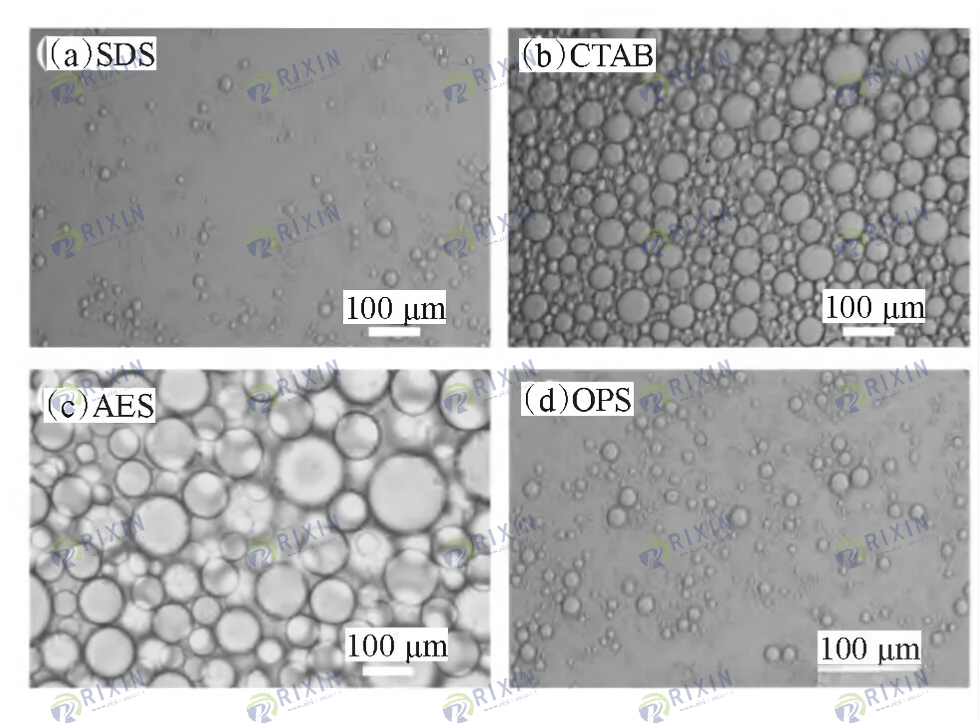 Figure 6. Emulsification effect of MoS2 nanosheet dispersions with different surfactants
