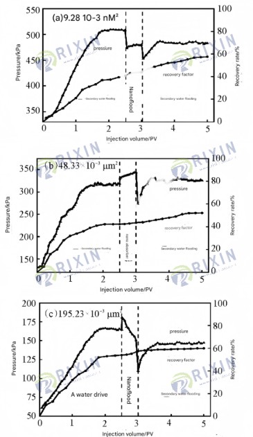 Figure 7 Results of core flooding experiments with different permeabilities