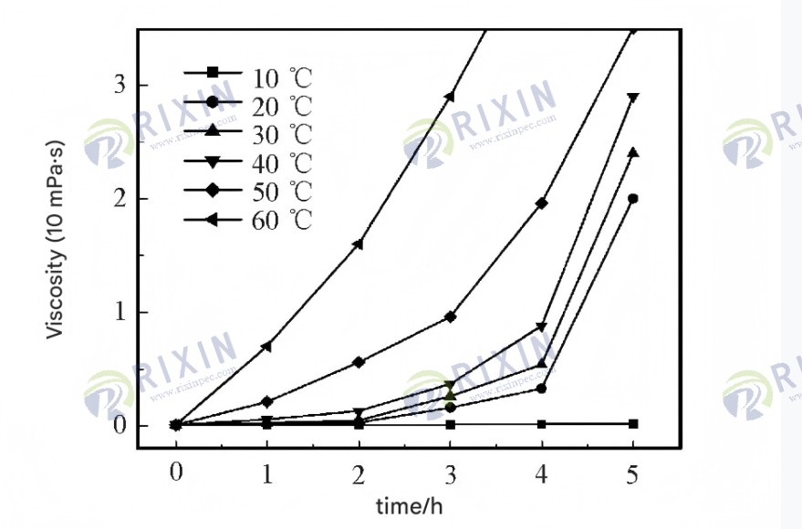 Figure 1. Viscosity of high-strength liquid sealant over time at different temperatures.