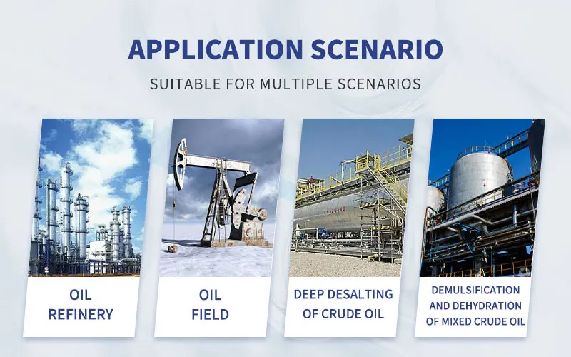 2. Light and medium crude oil demulsifier, dosage 5 ~10mg/L. Heavy crude oil demulsifier, dosage 15 ~ 20mg/L.