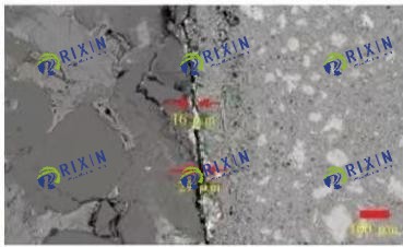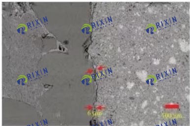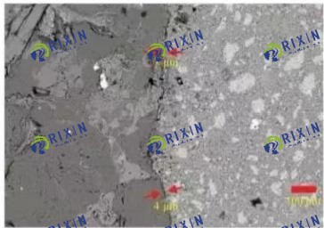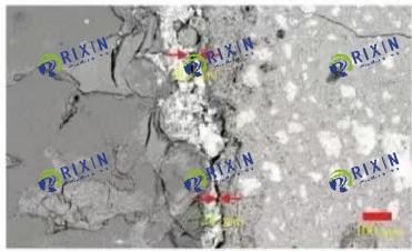 The microscopic morphology of the sandstone-cement stone cementation surface after 2 and 7 days of curing at 85°C is shown in Fig. 8, in which the left side of the cementation surface is sandstone, and the right side is cementite, and in the absence of filter cake, the cementation between sandstone and cement stone is tight, and the gap between the cementation interface is small, the curing 2d is about 6~9 μm, and the curing 7 days is about 4~7 μm, and the overall cementation is better, basically forming the overall cementation of sandstone-cement stone, so that the cementation strength of the second interface is greatly enhanced.